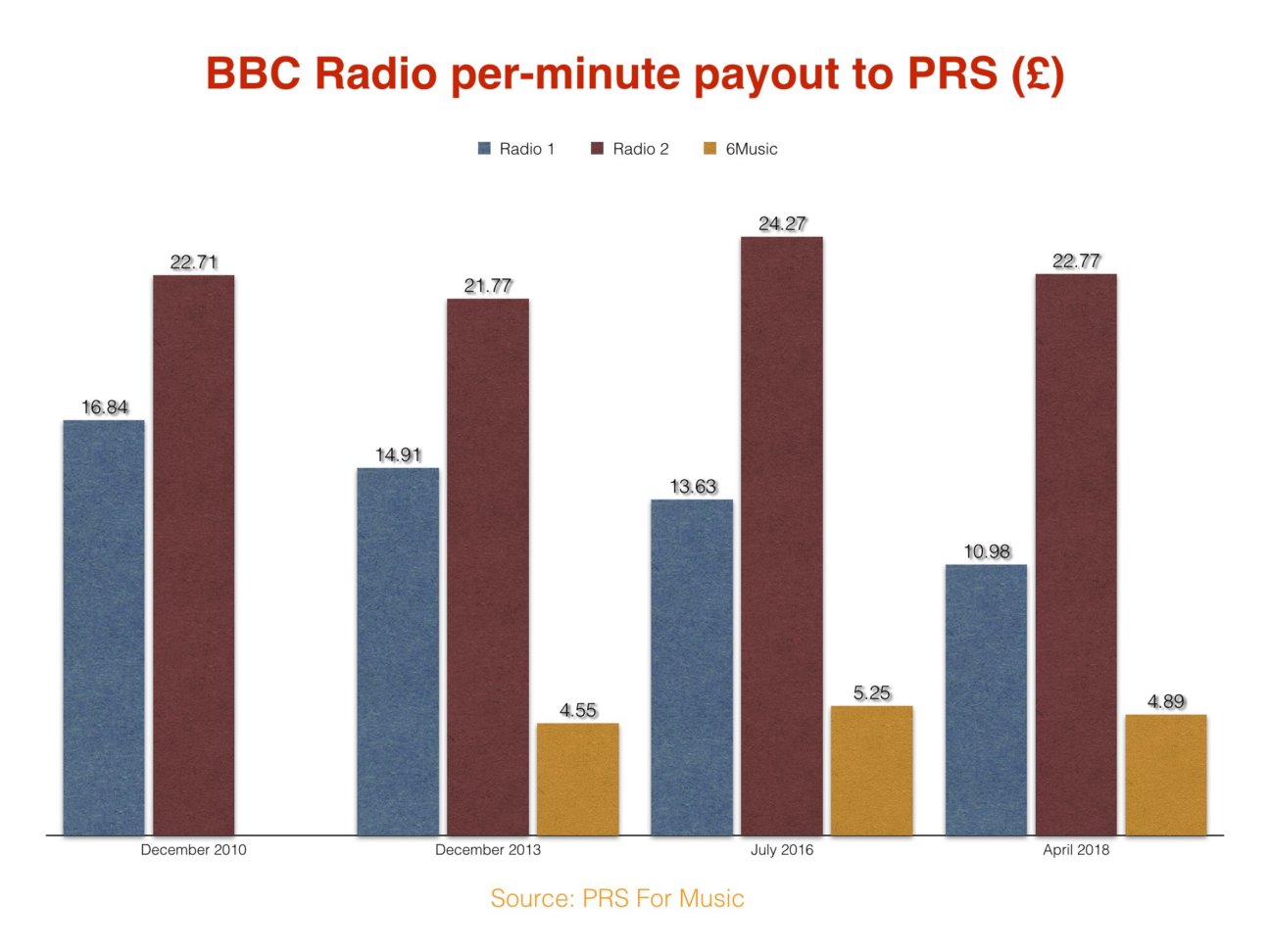 PRS is paying songwriters 26 less per minute play on BBC Radio 1 than